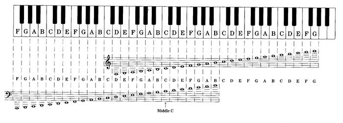 نت های پیانو روی خط حامل+ جدول نتهای پیانو